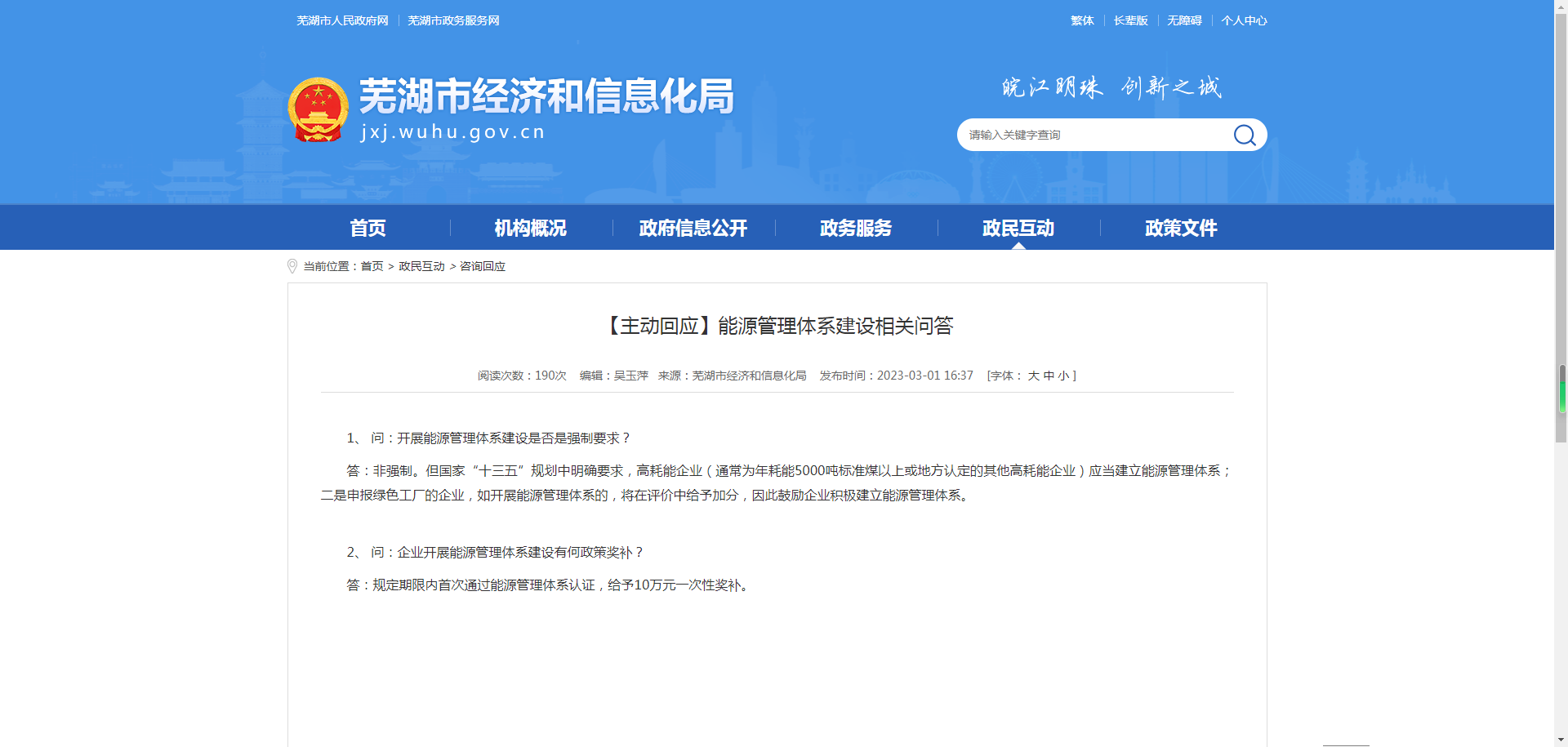 问:企业开展能源管理体系建设有何政策奖补?